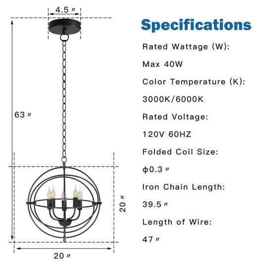 20 Inch 5 Lights Metal Chandelier with Pivoting Interlocking Rings