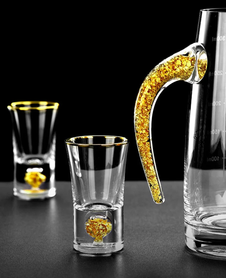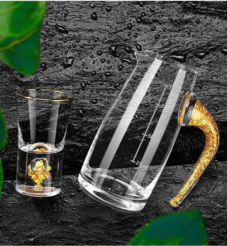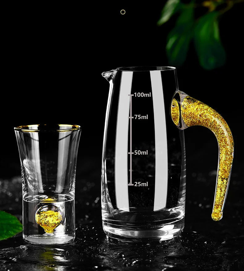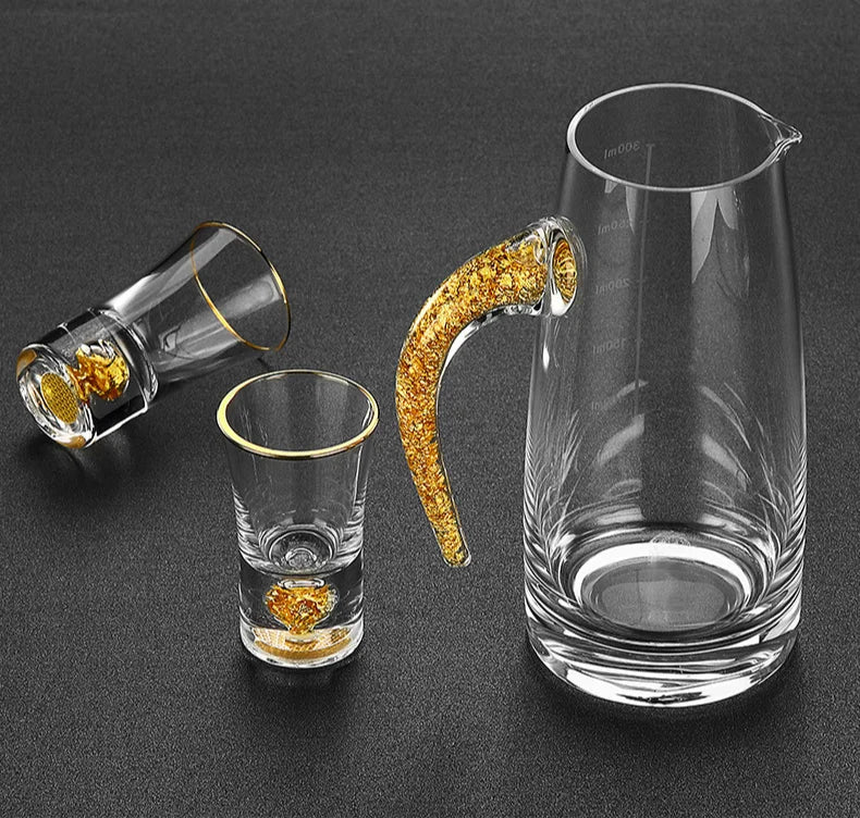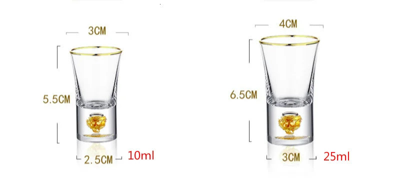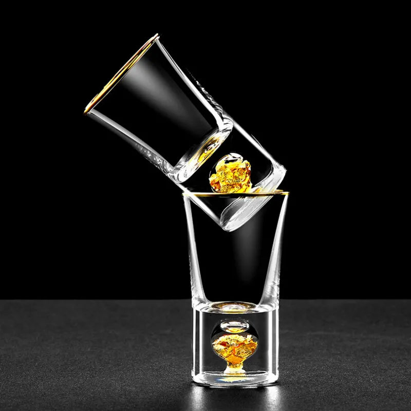 24K Gold Foil Crystal Liquor Spirits Shot Glass Bar High Grade Golden Sake Vodka Small Shots Wine Glasses Cup Vasos De Cristal