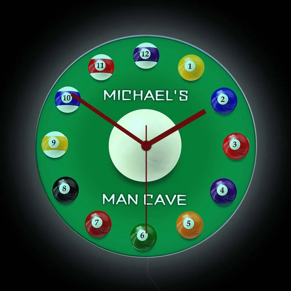 Neon Billiard Balls Wall Clock – LED Illuminated Glow in Dark Clock for Playroom, Bar, Snooker Game