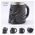 Medieval Dragon Resin Stainless Steel Beer Mug 600ml Retro Tankard Skull Coffee Cup Tea Mug Tumbler Pub Bar Decor Drop Shipping